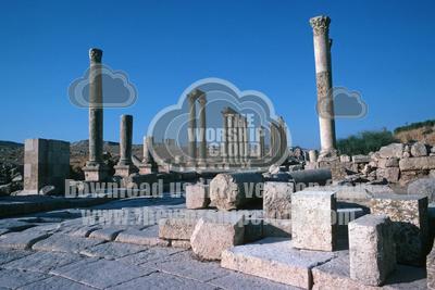 Colonnade in ruined city of Jerash in Gilead mountains Jordan