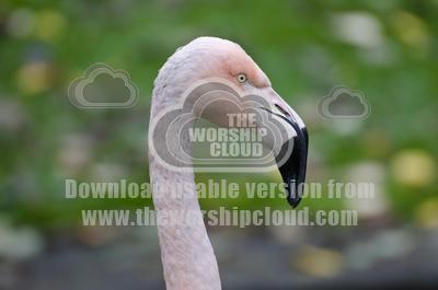A pink pink flamingo not looking all that friendly