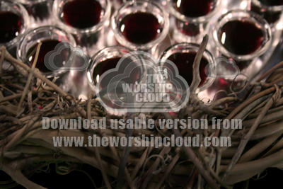 Communion glasses surrounded by a crown of thorns.