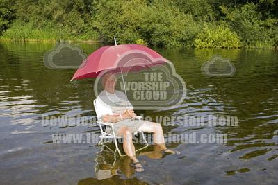 home | resources | cooling off! man holding red umbrella sitting on picnic chair in