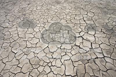 • Cracked earth on dry river bed, North East Zambia
