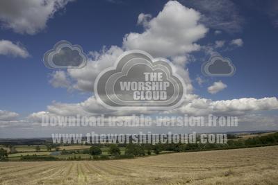 Cumulus clouds in deep blue sky over Mickleton, near Chipping Campden, Cotswolds, Britain