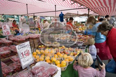 • People buying fruit & vegetables at market, St Pierre sur Mer, F
