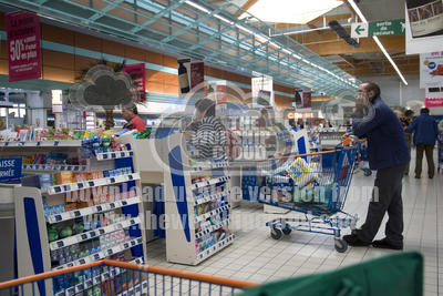 Customers waiting at checkout E Leclerc superstore Le Havre Fran