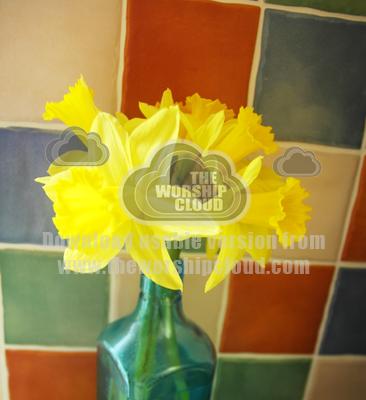 Daffodils in a reclaimed bottle vase. Spring!