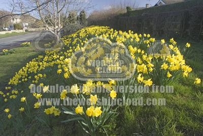 • Large bank of flowering daffodils in spring sunshine Woodmancote