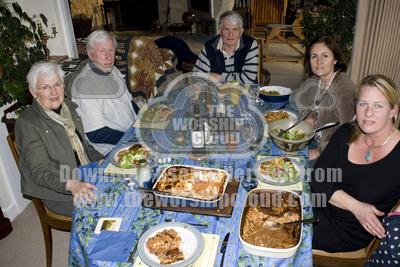 Dennis and Marie Everett with Boultons at meal table Brocklebank 2008