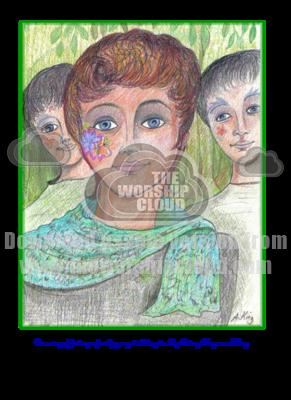 Coloured pencil drawing based on a vivid dream about belonging to a safe group and receiving an identity mark on the face of a painted flower. Others in the group also wear painted flowers on their faces.