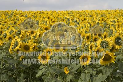Field of mature sunflowers, Helianus annus, Snowshill, Cotswolds, UK