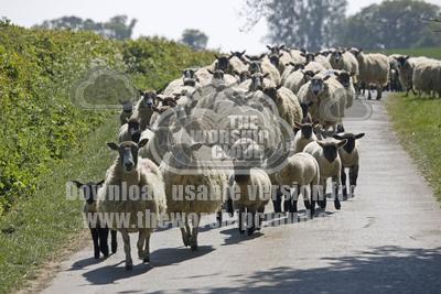 home | resources | flock of masham sheep and lambs being driven down country road i