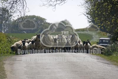 home | resources | flock of masham sheep and lambs being driven down country road i