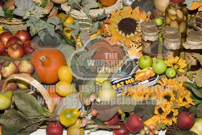 Fruit and flowers in attractive shop window display, Cotswolds, UK