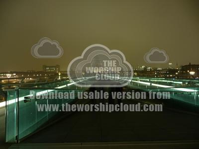 St Paul's Cathedral taken from the other side of the river, looking over the Millenium Bridge, with some ghostly figures walking under the bridge.