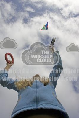 home | resources | girl flying kite on cliffs above woolacombe, woolacombe, devon,