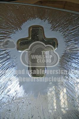Cross engraved in a glass screen in Great Missenden Church
