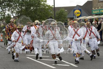 Gloucestershire Morris Men enjoying dancing Bishops Cleeve Flower Day near Cheltenham, UK