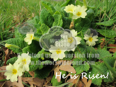Primroses push through carpet of dead leaves in a local cemetery