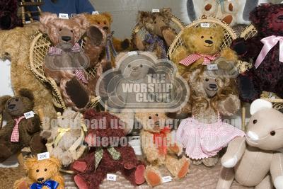 Handmade soft toys on stall at annual Cider Fete, Caudebec-en-Caux on River Seine near Lillebonne, France