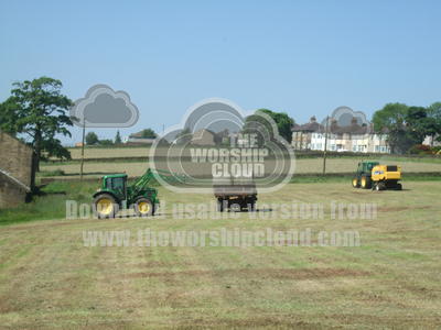 A picture of tractors loading round bails onto a trailer