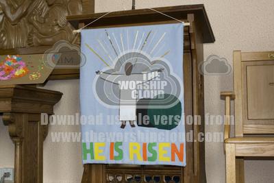 home | resources | he is risen pulpit hanger on church lectern bristol uk