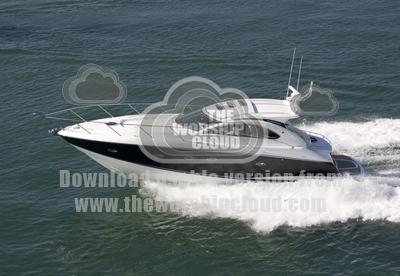 High speed black and white motor launch churning up white spray Poole Harbour Dorset UK