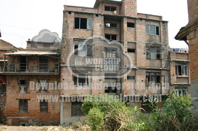 These flats are behind the cafes and shops in Kathmandu. People live here. Can you find the golden statue and the fan?