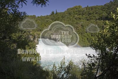 Huka Falls on Waikato river near Taupo North Island New Zealand. Of great important for electricity generation it supplies 8 hydroelectric schemes and water for cooling for 2 geothermal units. The average daily flow is 160 cub metres per second.