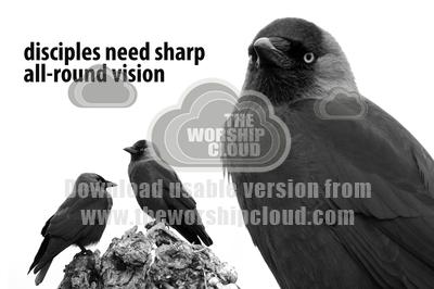 jackdaws with text "disciples need sharp all round vision"