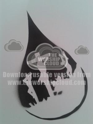Black and white graffiti image created using spray paint on canvas depicting the moment of Jesus death.