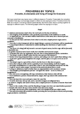 We have noted that many topics recur in different places in Proverbs. Presumably the compilers intended it that way, to encourage people to reflect on one saying at a time. Proverbs mirrors the Bible as a whole in not being ordered systematically. But there’s also value in putting together its sayings on different topics. The following pages collect the sayings on a topic…
