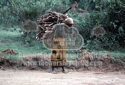 • Young Kikuyu woman carrying heavy load of firewood Aberdares Ken