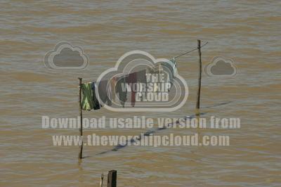 2 poles stuck in the mud serve the washing line in this floating village. Cambodia
