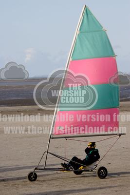 • Push start land yacht racing on Cherrieux beach Brittany, France
