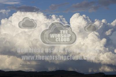 Low altitude billowing cumulonimbus clouds on horizon looming above dark foreground Northern Spain