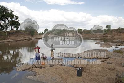 Masai children collecting water Mara river Masai Mara North Reserve Kenya
