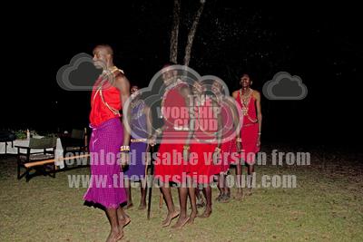 • Sun setting behind umbrella acacia tree Masai Mara North Reserve