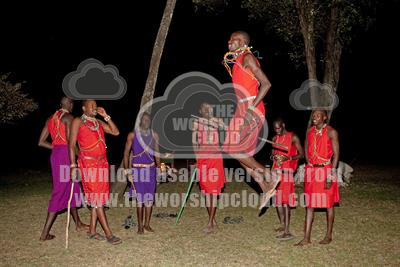 • Masai warriors dancing Mara North Reserve Kenya