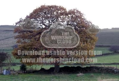 A mighty oak displaying its strength and might in its autumnal clours.