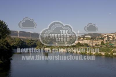 Millau viaduct spanning the Tarn Gorge, southern France. At 336 metres the cable-stayed Viaduc de Millau is the highest bridge in the world and 2.5 kms long. Designed by British architect Sir Norman Foster the viaduct is higher than the Eiffel Tower. Costing 400 millions euros it was competed in December 2004 in 39 months.