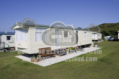 Modern static holiday caravans on site at North Morte Farm, Wool