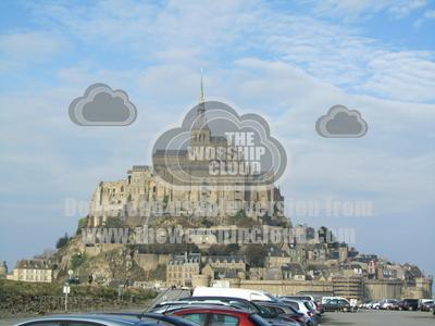 The community of Mont St Michel in France, the twin of St Michael's Mount in Cornwall. It's almost an island. The highest building is the Abbey.