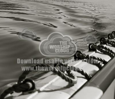 B/W of ropes and ripples on a ferry on Windermere
