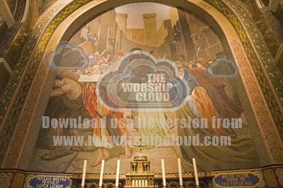 • Mosaic of placing crown of thorns on Christs head, Lourdes Basil
