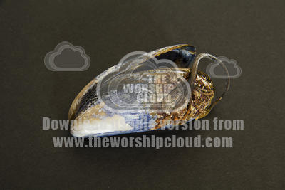 Left stranded on the beach a mussel shell with the remnants of a piece of seaweed attached like some alien monster