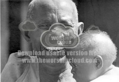 Taken at a twinning ceremony in Uganda 1967 where the children were given their names. The joy of Grandma is evident, as is the child's apprehensiveness.