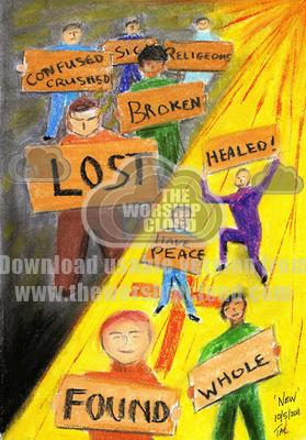 The image depicts the transformative effects of Salvation using the idea of cardboard testimonies