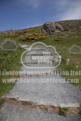 Newly surfaced main coastal cliff path with steps Worms Head The