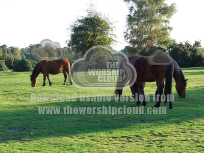 New Forest ponies grazing at Canada Common on a sunny October afternoon.