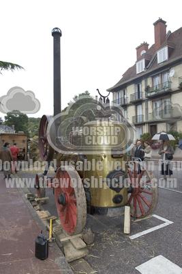Old steam engine for powering threshing machine at Ciider Fayre, Caudebec-en-Caux on River Seine near Lillebonne, France