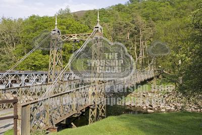 Old rusting iron suspension bridge Clywedog dam Elan Valley Wale